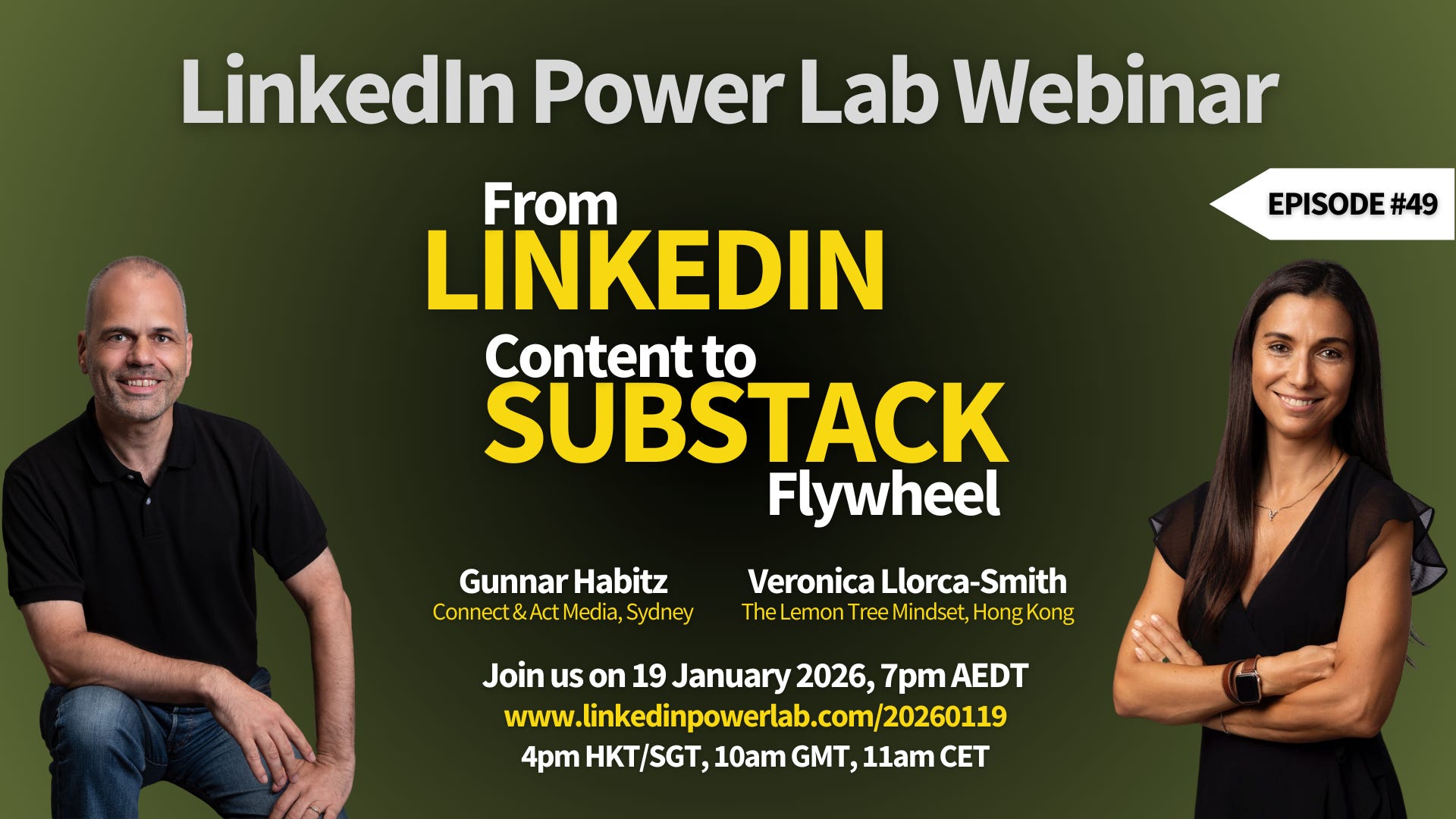 Excited to kick off my webinar series on 19 January together with Veronica Llorca-Smith talking about the flywheel from LinkedIn to Substack - it's quite easy to leverage both platforms well.